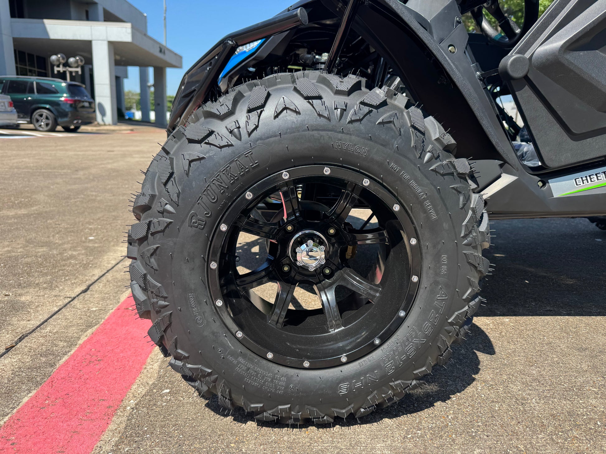The Cheetah 300Pro is an upgrade from the Cheetah 300EX! Cheetah 300Pro has bigger 25X8-12 front and 25X10-12 rear tires, side doors, spare tires, turn signals! Its liquid-cooled 300cc engine with EFI technology allows for optimal performance in any weather and altitude. With a sporty design, LED light bar, and high-quality features such as a Lexan windshield and steel bumper, this UTV is ready for any adventure. Don't forget the added safety features, like four-point seatbelts and anti-slip pull belts for the rear suspension. Perfect for thrill-seekers and off-road enthusiasts.