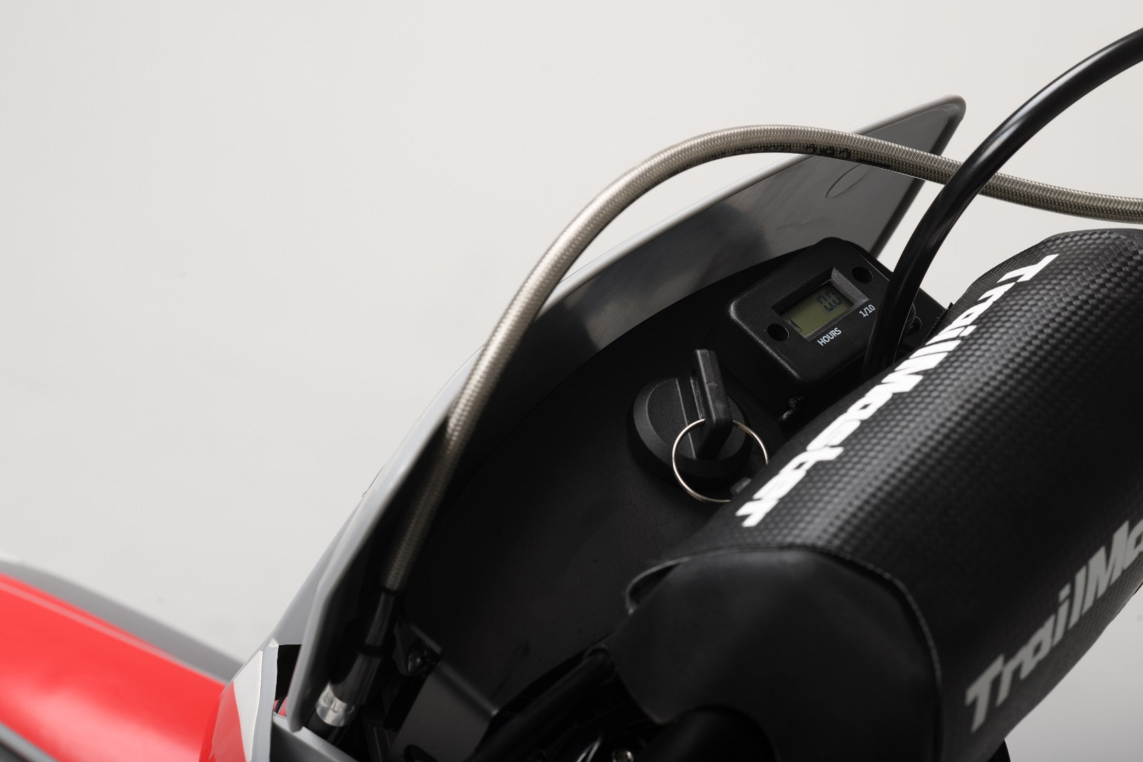The TrailMaster LX250 Dirt Bike features standard equipment such as rearview mirrors, turn signals, speedometer, and taillight, making it an ideal Dual Sport bike. Furthermore, its Pro-Series line offers premium components including a large frame, inverted 54/60-950mm dual adjustable front shock absorber, high-quality rear dual adjustable absorber, performance stainless steel muffler, and a high-quality LED headlight with lens. The bike is also equipped with CNC forged alloy wheels, a high-performance CHOCHO 520HDS chain, CNC alloy unbreakable levers, CNC forged alloy upper and lower triple clamps, a 7 series aluminum alloy handlebar, and a waterproof wire harness. Additionally, the non-slip gripper seat, quality front and rear disc brakes, and motocross ergonomics provide a natural and effortless handling experience over any terrain. The electronic CDI ignition allows for easy key and kick starting and delivers smooth power throughout all gears.