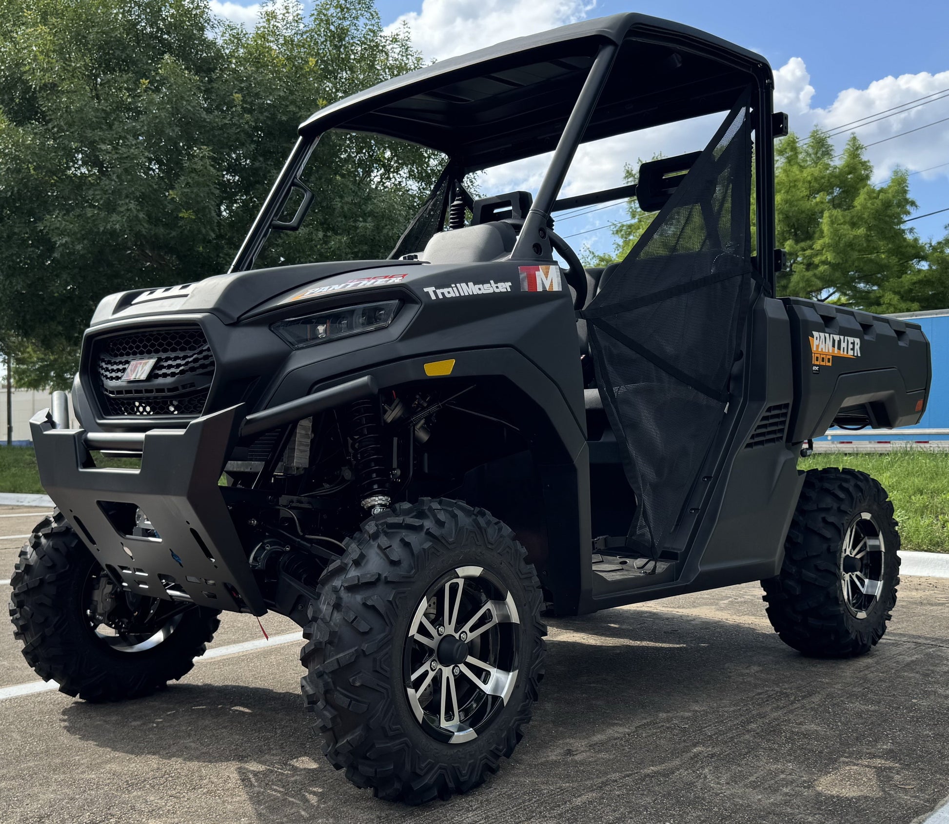 The Panther 1000 is a utility side by side equipped with an 83 HP water cooled high performance 997cc V-twin engine with (EFI) electronic fuel injection with a top speed of 60 mph. It comes with on demand 4WD / 2WD Switchable Front & Rear Differential, Industrial Leading 4WD Turf Mode, Hill Descent Control, & Electric Power Steering. It is also equipped with 4-wheel independent suspension for optimal driving experience. 4500 lb. Winch with Synthetic Rope & Overload Protection comes standard for heavy towing ability.